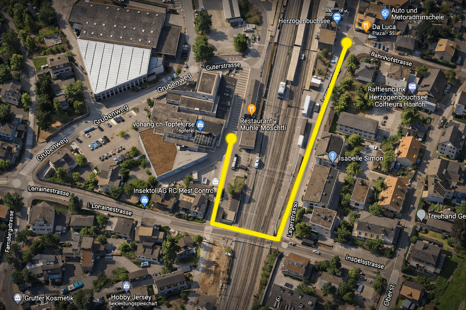 Herzogenbuchsee liegt sehr zentral. Über die Autobahn A1 nimmst du die Ausfahrt Wangen an der Aare und bist dann in wenigen Minuten in Herzogenbuchsee. Schon von weitem kann man das hohe Gebäude der Firma Melior beim Bahnhof sehen. Es gibt noch weitere Gebäude der Firma Melior, daher achte darauf, dass du den Bahnhof findest.